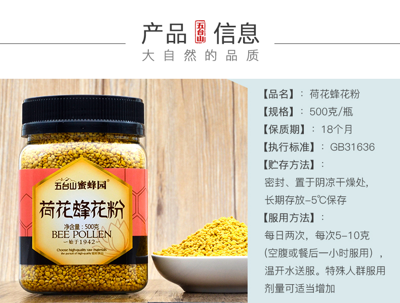 五臺(tái)山蜜蜂園荷花蜂花粉500克